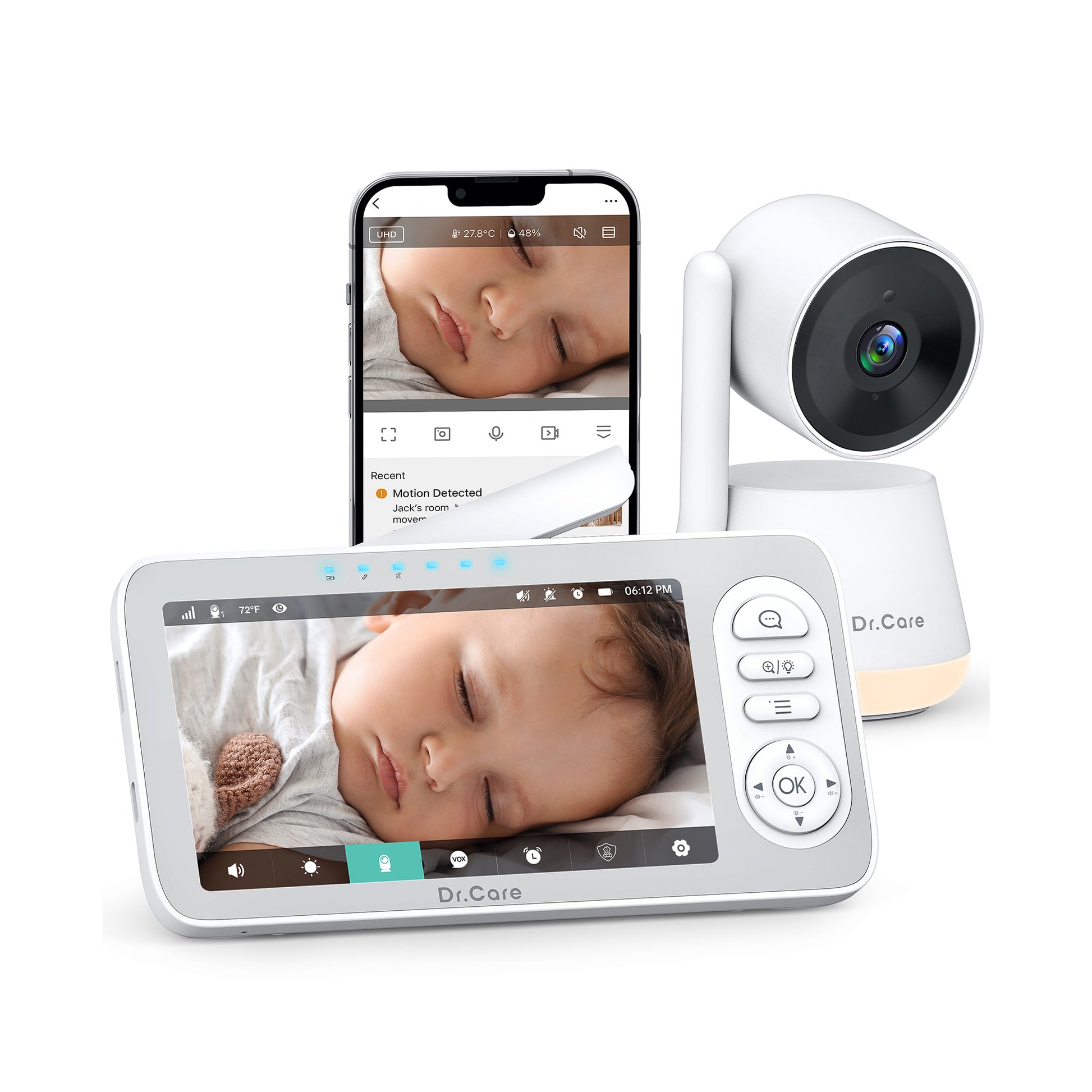 What You Get: At Dr.Care, we help every parent embrace the joy of parenthood without sacrificing personal time. The package includes 1 Dr.Care LumiView Plus Smart WiFi Baby Monitor parent unit, 1 baby unit, 2 USB-C charging cables, 2 power adapters, 1 Floor Stand and 1 user manual. Enjoy a 1-year quality warranty with an additional 6-month warranty upon registration, plus 24/7 customer support.