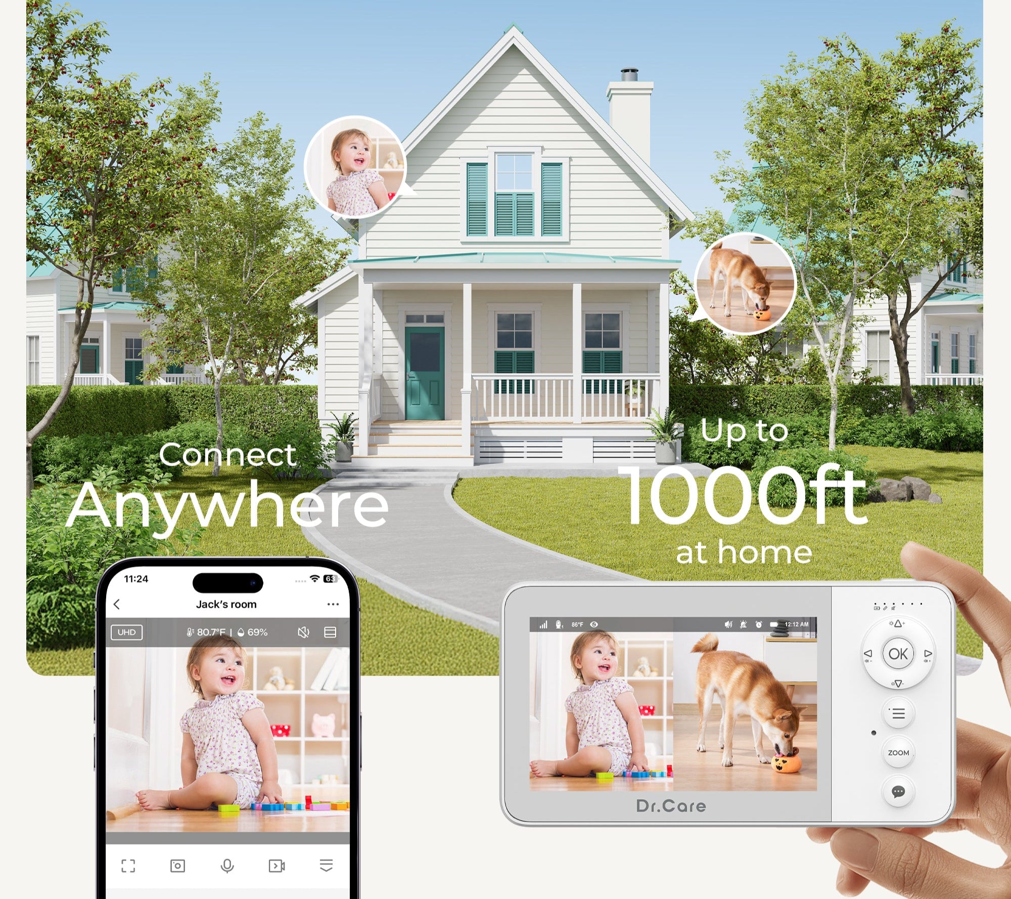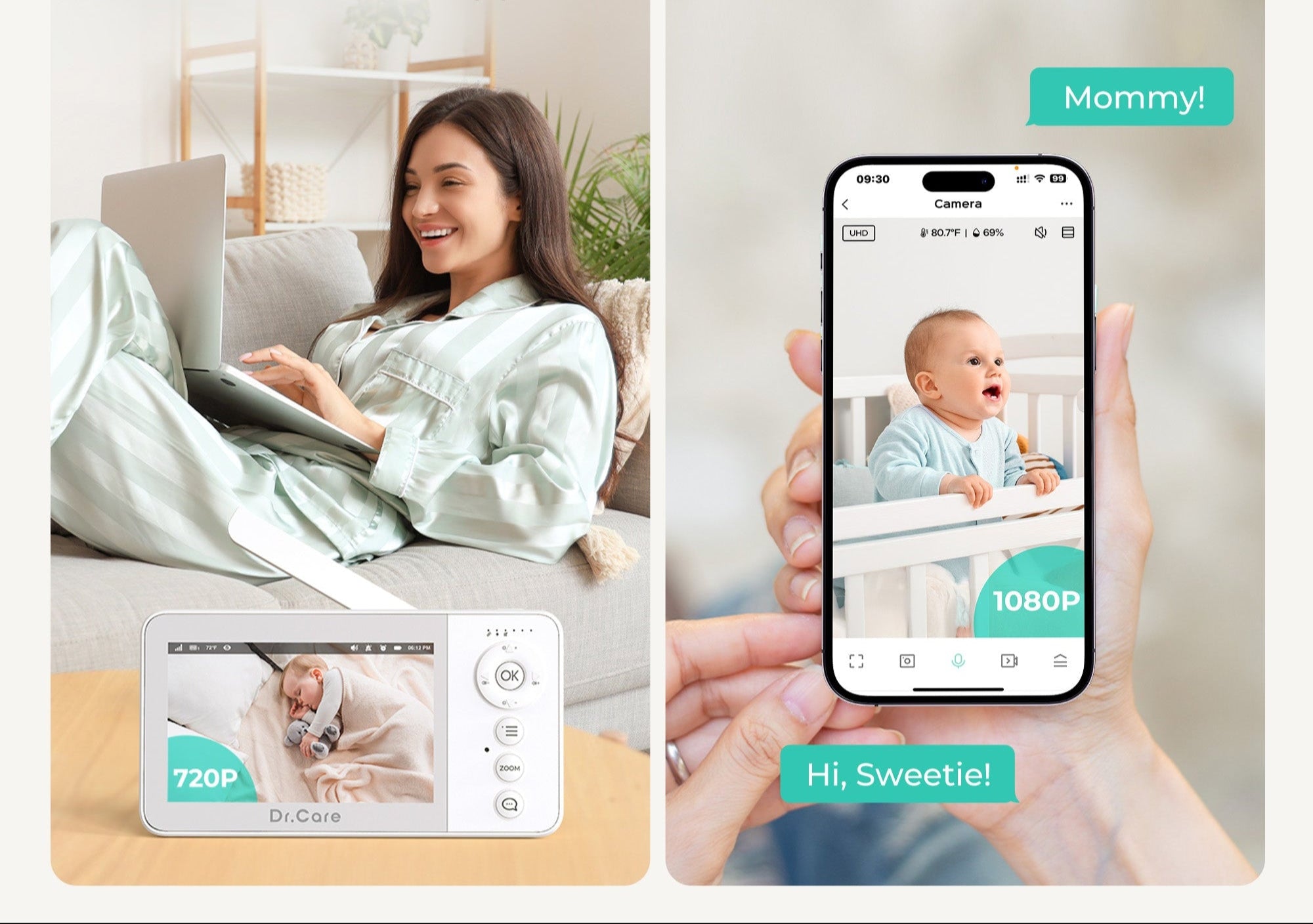 Hear every breath of your newborn with adjustable volume, or switch to VOX mode to detect cries—even with the screen off. Stay connected with your little one through two-way talk, no matter where you are in the house