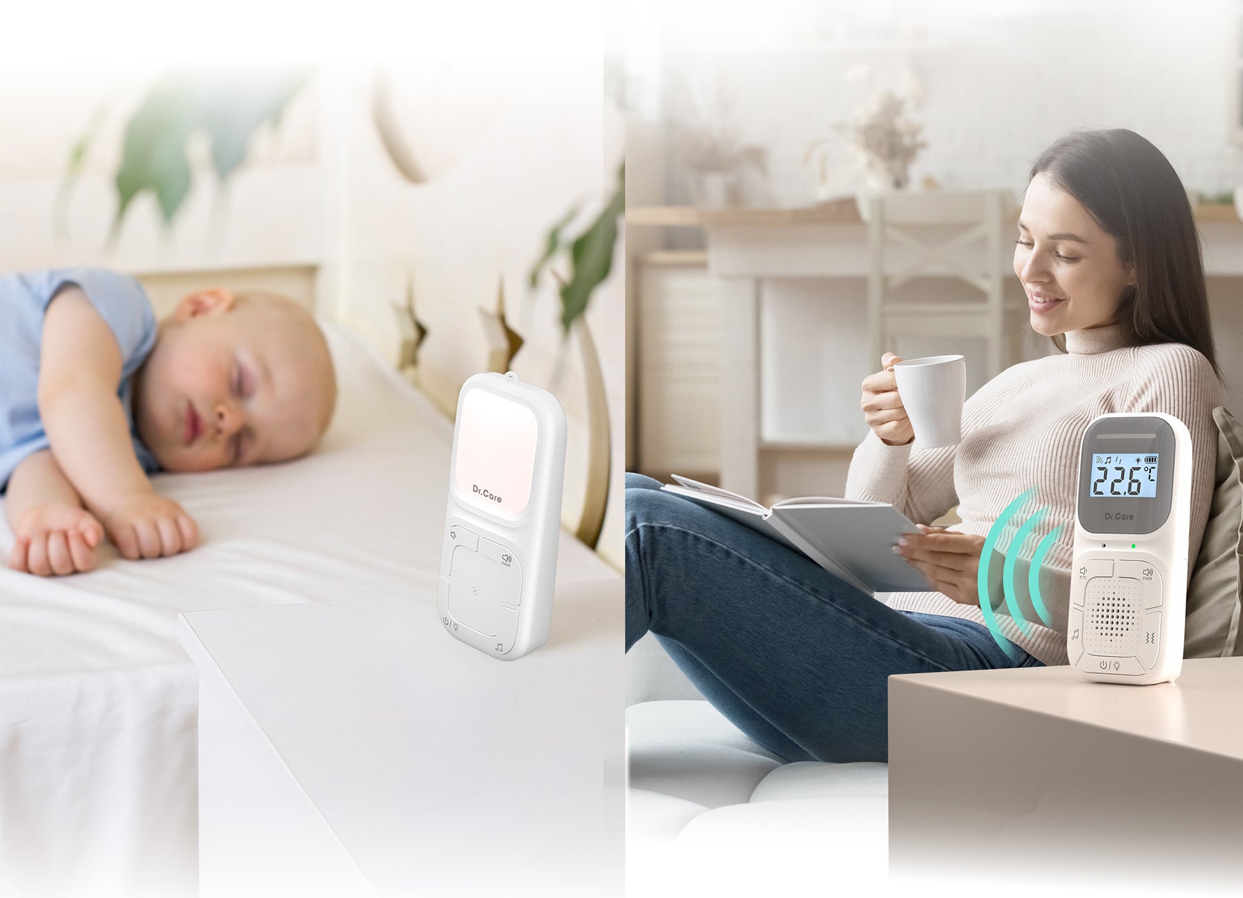 Equipped with high-sensitivity microphones, our baby monitor captures every little sound and breath with remarkable clarity from both sides, ensuring you never miss a moment of your baby's activities.