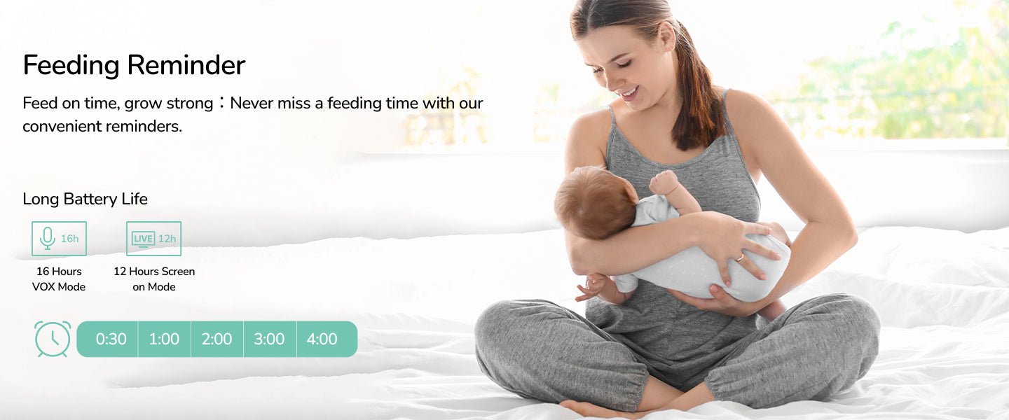 Feeding Reminder :  Customizable feeding reminders ensure your baby’s schedule stays on track.